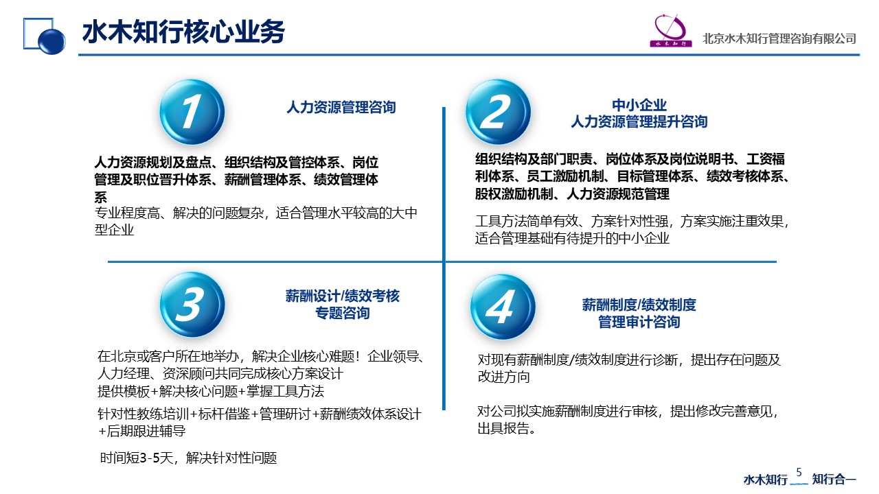 北京水木知行管理咨詢有限公司(www.bjsmzx_com.pn365.cn)專注提供人力資源管理咨詢、人力資源管理培訓、人力資源招聘咨詢、人力資源獵頭服務業務;咨詢業務范圍包括組織結構與管控體系、崗位管理體系、薪酬管理體系、績效管理體系,咨詢形式包括全過程咨詢、教練式咨詢和特訓班;培訓業務包括企業基礎管理...[詳情]